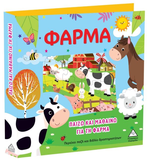 Παίζουμε και μαθαίνουμε για τα ζώα της φάρμας μέσα από ένα βιβλίο δραστηριοτήτων με υπέροχες εικόνες κι ένα διασκεδαστικό και πολύχρωμο παζλ.
