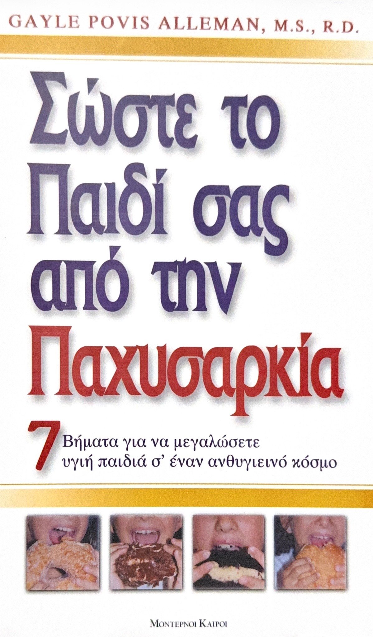“Παιδί μου, φάε όλο το φαγητό σου”, ή μήπως καλύτερα, “Παιδί μου, πρόσεχε τι τρως”; Επτά βήματα σας χωρίζουν από τη σωστή απάντηση. Επτά απλά στάδια που θα σας επιτρέψουν να θωρακίσετε τα παιδιά σας απέναντι στη νέα παιδική ασθένεια της εποχής μας, την παχυσαρκία. Το βιβλίο της αναγνωρισμένης διεθνώς, Αμερικανίδας διαιτολόγου, Gayle Povis Alleman επισημαίνει τους κινδύνους και τις παγίδες που κρύβει ο σύγχρονος τρόπος διατροφής για τα παιδιά ενώ, παράλληλα, προσφέρει χρήσιμες συμβουλές σωστής διατροφής. Ακολουθώντας συστηματικά τις πρακτικές οδηγίες και το πρόγραμμα που υποδεικνύει στις σελίδες του βιβλίου της η έγκριτη διαιτολόγος, θα έχετε την ευκαιρία να νικήσετε την παιδική παχυσαρκία και, κυρίως, να μεγαλώσετε υγιή παιδιά σε έναν κατά τα άλλα ανθυγιεινό κόσμο.